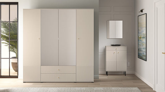 Skapis GALETO četrdurvju ar spoguli (200/210/55 cm), smilškrāsa