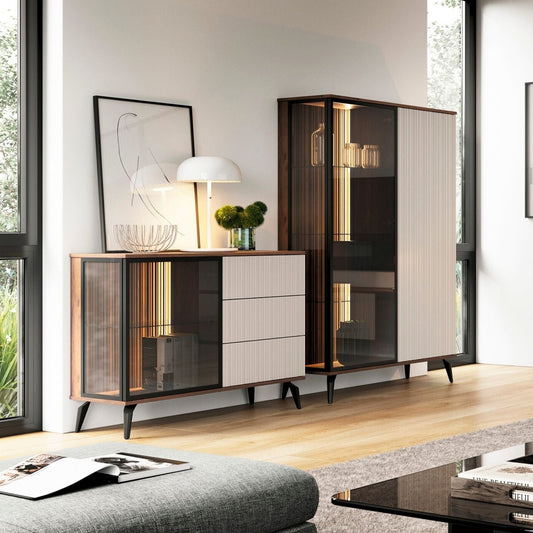 Vitrīnas skapis Vic 105/39,5/167 cm kašmirs/rieksts