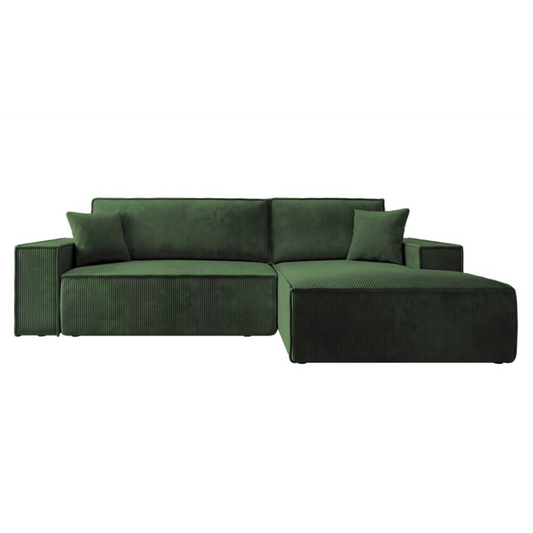 ARLO L-veida guļamais dīvāns ar glabāšanas kasti, universāls, tumši zaļš velvets