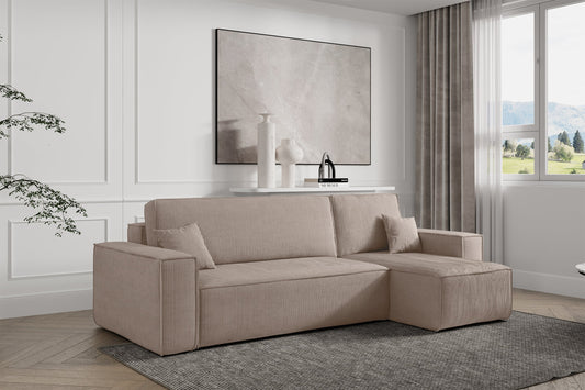 ARLO L-veida guļamais dīvāns ar glabāšanas kasti, universāls, smilškrāsas velvets